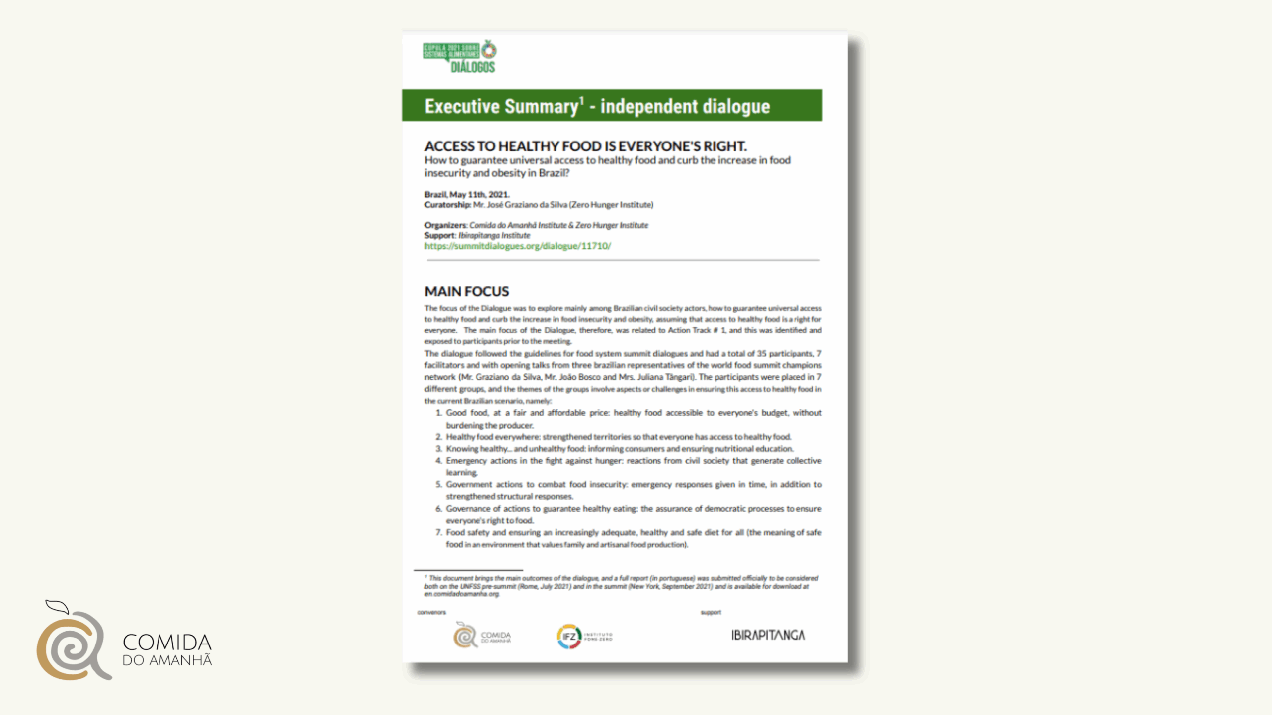 Resumo executivo – diálogo independente (documento em inglês)